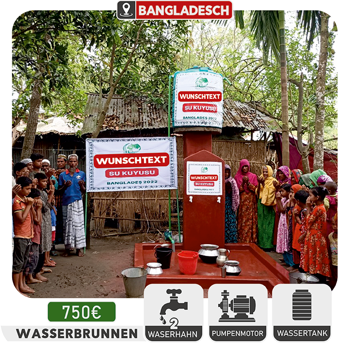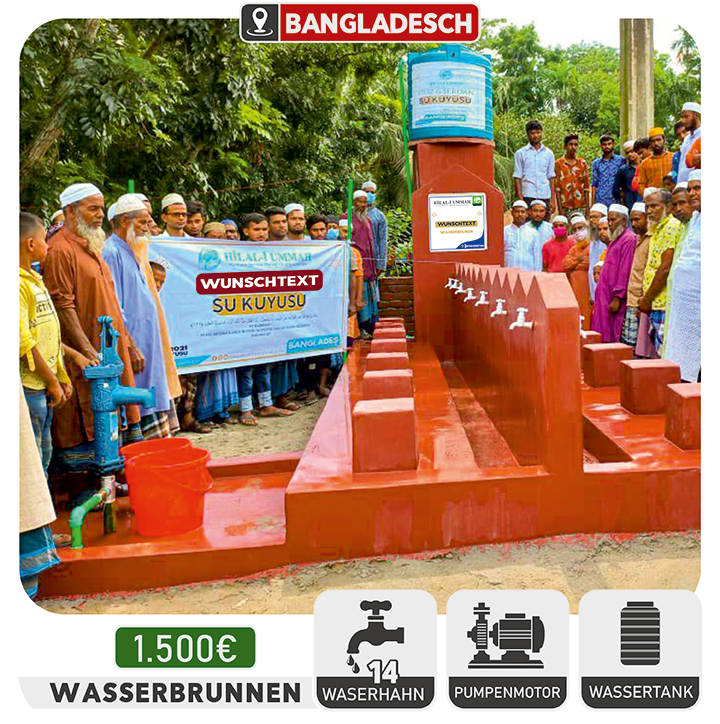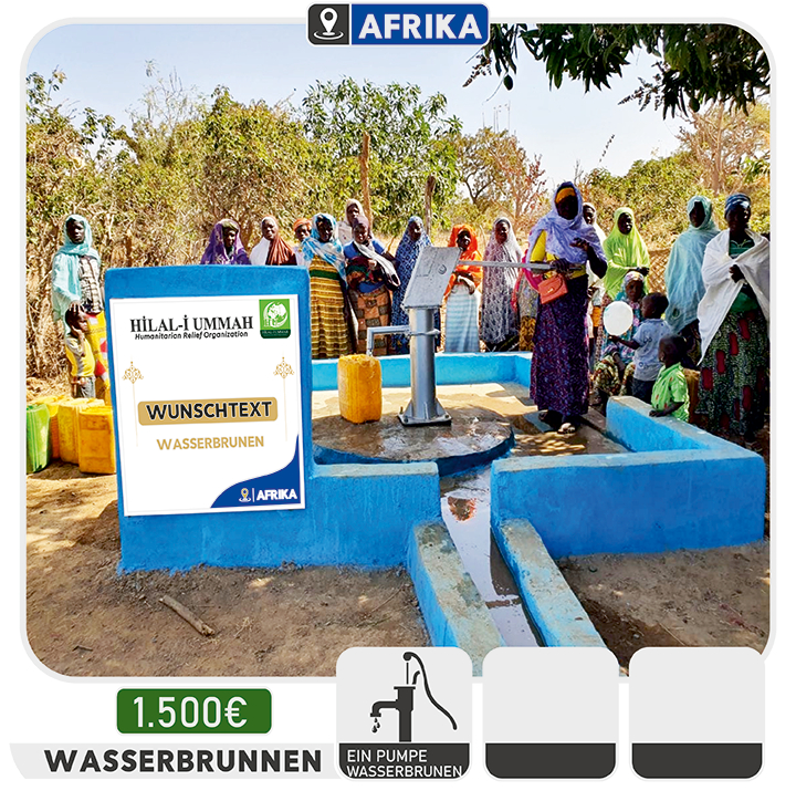 Wasser ist die Quelle des Lebens. Doch eine von zehn Personen hat keinen Zugang zu sauberem Wasser. Dürre, Armut, Bevölkerungswachstum und Umweltverschmutzung bedrohen saubere Trinkwasserquellen. Wasserbedingte Krankheiten nehmen täglich zu. Als Hilali Ummah setzen wir uns dafür ein, historische und aktuelle Herausforderungen anzugehen und den Menschen Zugang zu sauberem Wasser zu ermöglichen. Unsere erste Maßnahme besteht darin, Wasserbrunnen in Gebieten mit akutem Bedarf zu errichten. Wir arbeiten daran, den Herausforderungen durch nachhaltige und praktische Lösungen zu begegnen, um den Menschen in Not den Zugang zu sauberem Wasser zu ermöglichen.